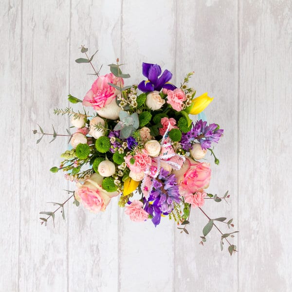 Crizantemă Yokko ,Garofiță ,Iris ,Lalea ,Miniroză ,Trandafir ,Wax flower ,Zambilă |